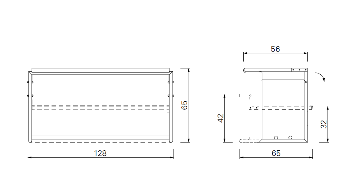 gris de l'autre, avec bordure en hêtre massif. Pliable pour une utilisation à deux hauteurs différentes.